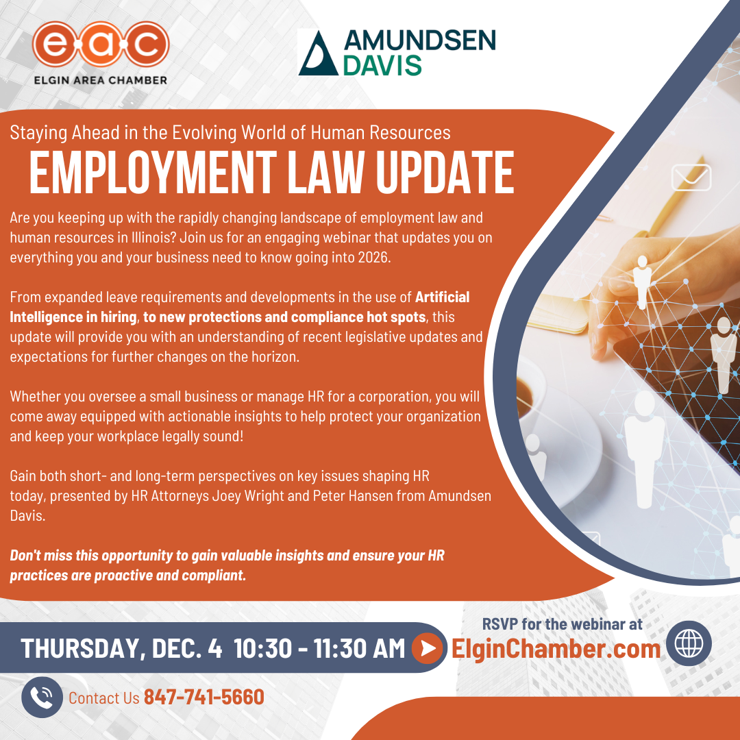 Are you keeping up with the rapidly changing landscape of employment law and human resources in Illinois? Join us for an engaging webinar that updates you on everything you and your business need to know going into 2026.