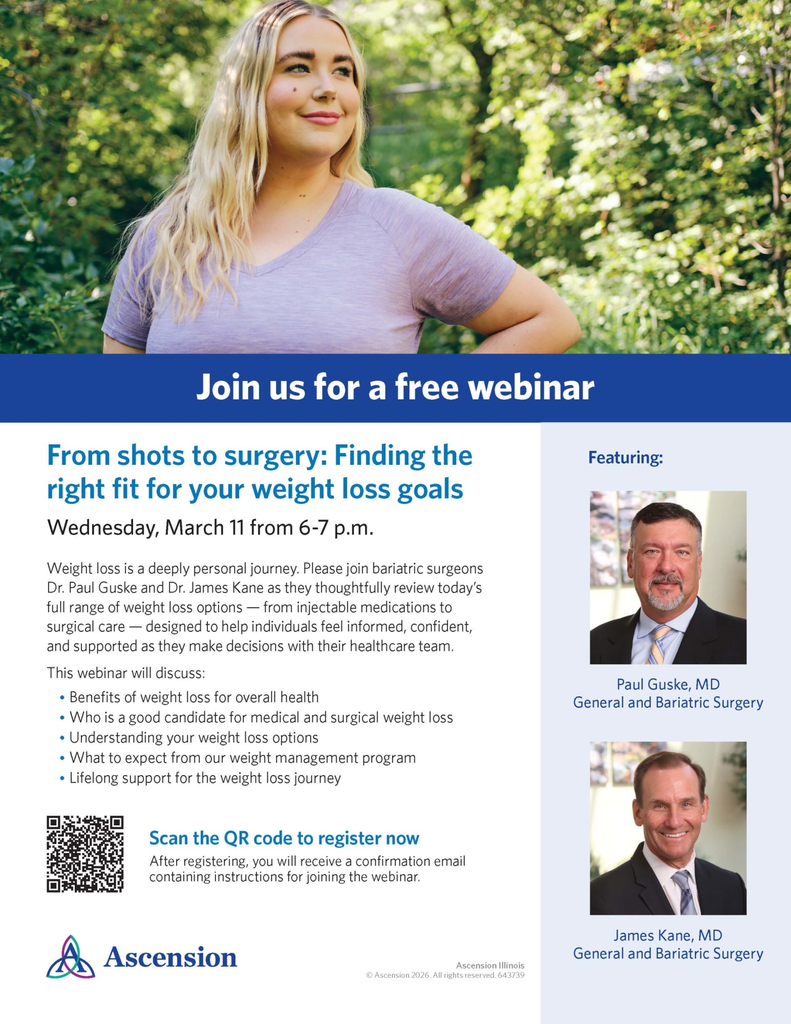 Modern Weight Loss: Navigating Meds and Surgery with Dr. Guske & Dr. Kane. Scan the QR Code to register: